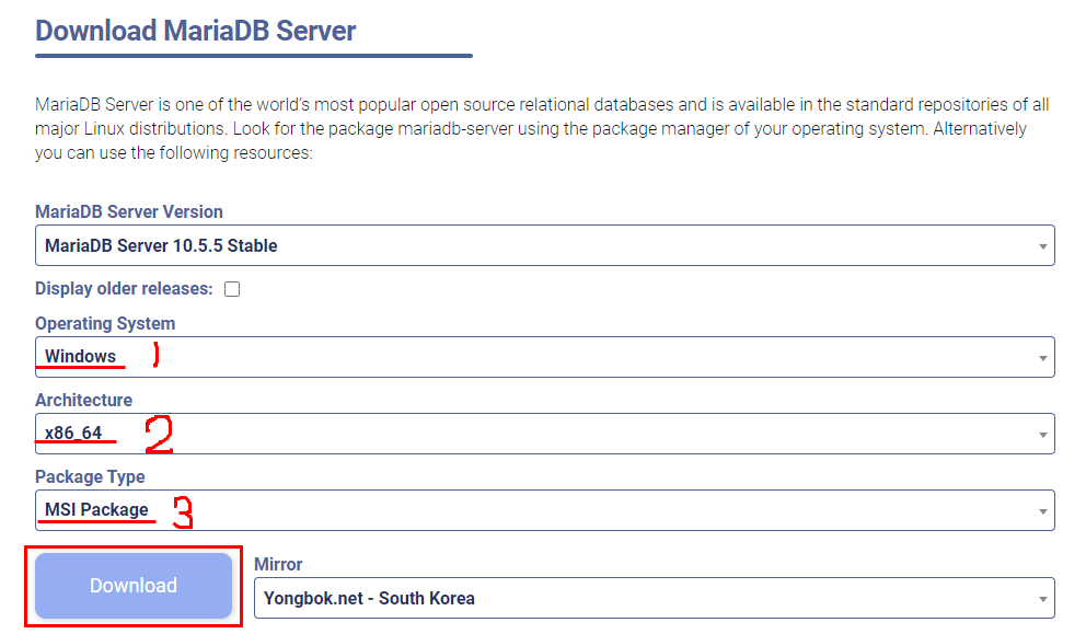 1. mariadb.org/download/ 마리아 디비 다운로드 페이지로 접속합니다.