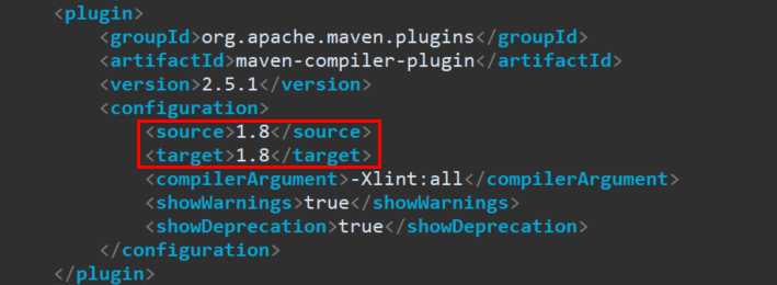 - build > plugins > plugin > maven-complier-plugin > configuration에서 source버전 1.8, target버전 1.8로 변경
