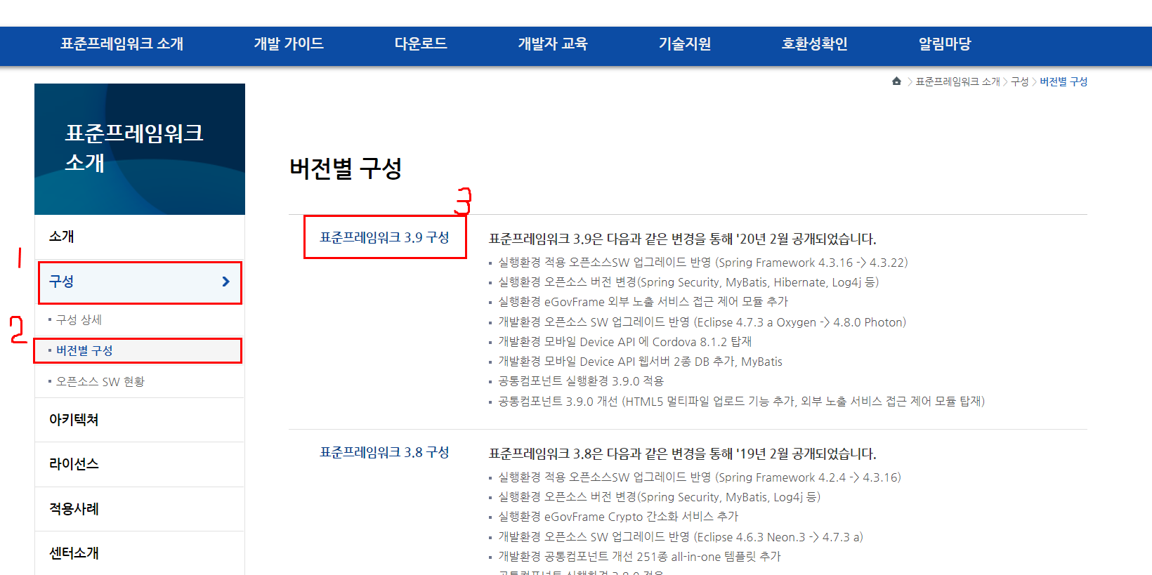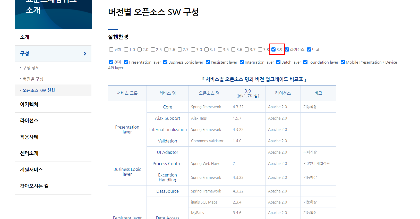 - 표준프레임워크 소개 > 구성 > 버전별 구성 확인