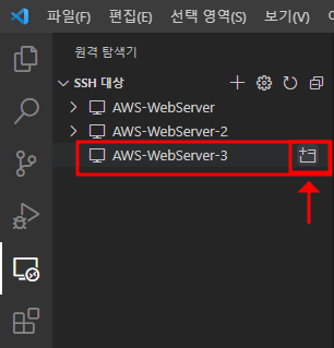 [config 파일에서 생성한 호스트 네임을 선택합니다. config 파일 설정에서 AWS-WebServer로 호스트 네임을 정했으면, AWS-WebServer-3가 아닌 AWS-WebServer를 연결 합니다.]