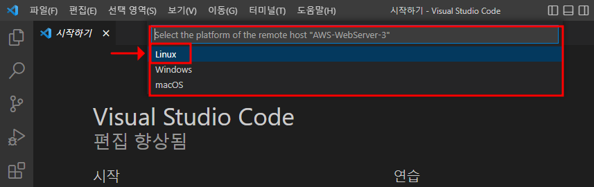 새 창이 열리면 선택 창에서 Linux/Windows/macOS 중 호스트 (EC2 instance)의 OS를 선택