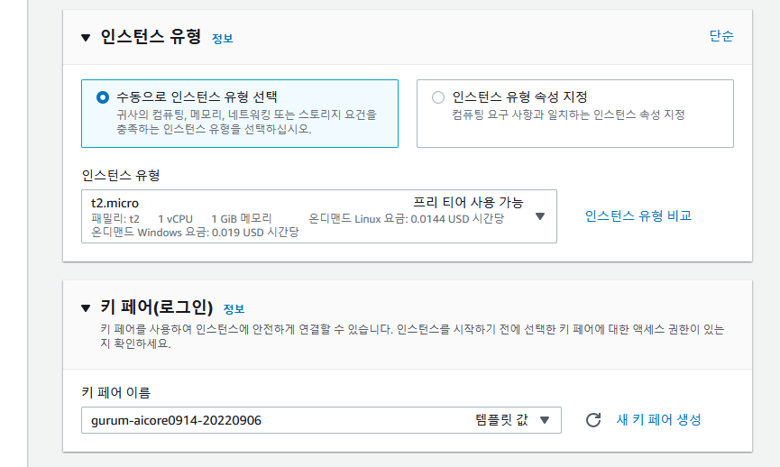 4. 인스턴스 유형과 키페어는 따로 설정하지 않는다.