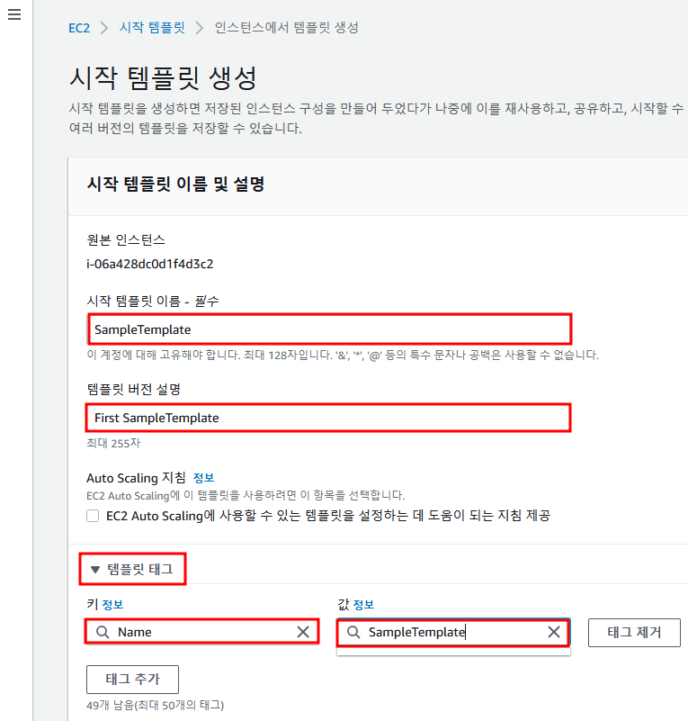 [템플릿을 생성할 때, 인스턴스 유형 또는 키페어에 대한 설정이 필요한 경우 바꾼다.]