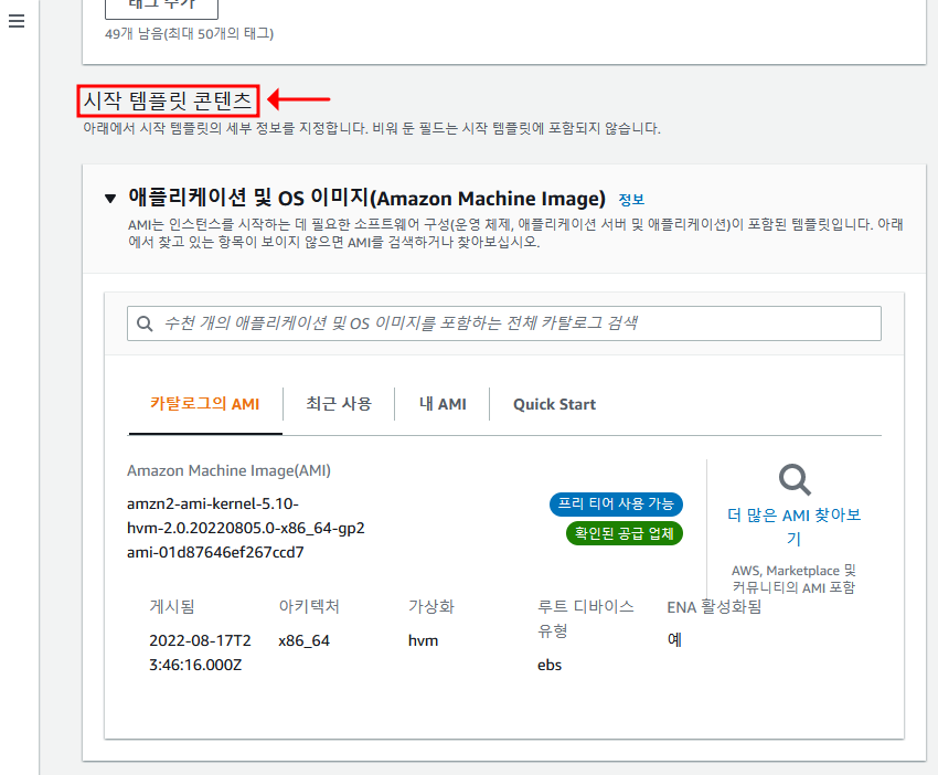 [템플릿을 생성할 때, 인스턴스 유형 또는 키페어에 대한 설정이 필요한 경우 바꾼다.]