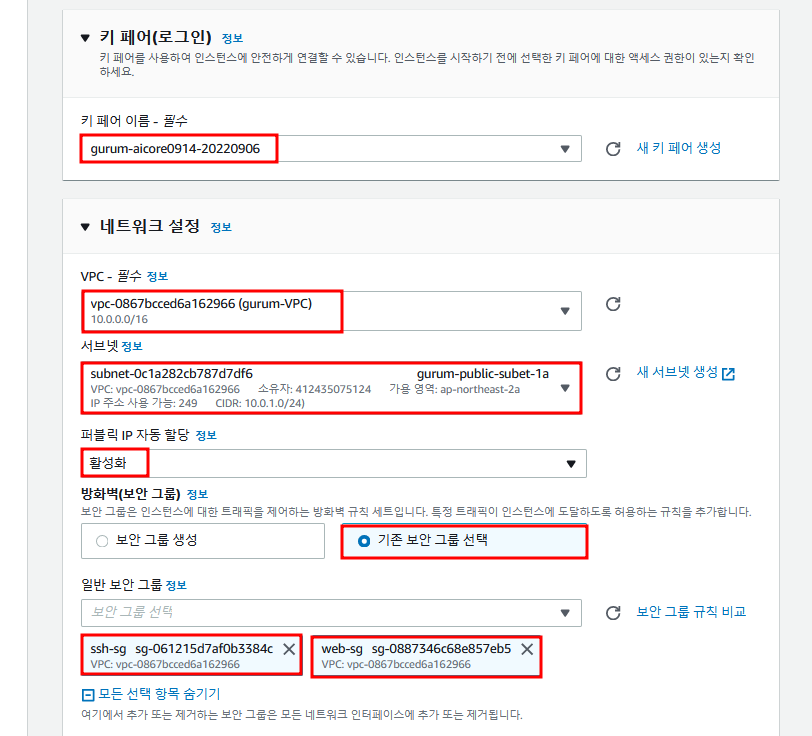 - 퍼블릭 IP 자동 할당: 활성화 선택