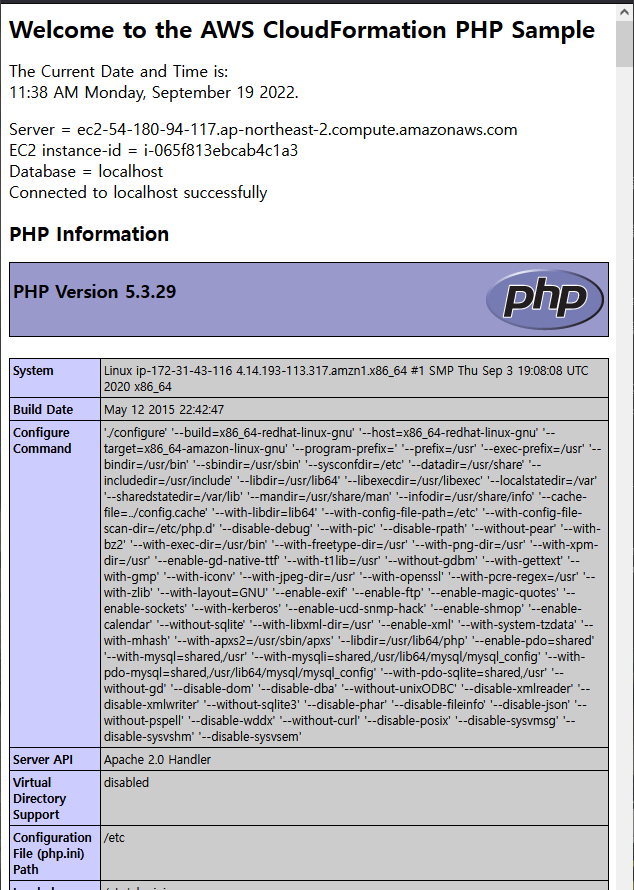 스택 생성 완료 후, EC2 메뉴 인스턴스 -> 생성된 EC2 instance의 퍼블릭 IPv4 주소 확인 -> 브라우저에 주소 입력