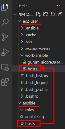 sudo cp /etc/ansible/hosts . sudo chown <사용자ID>:<사용자그룹> <인벤토리 파일>/etc/ansible/hosts 파일을 원하는 경로로 복사한뒤, root 가아닌 사용자가 접근할 수 있도록 chown 명령을 사용한다.