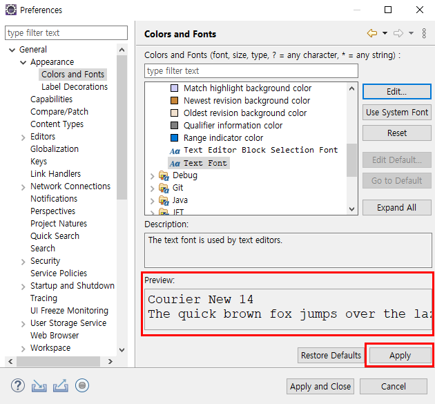 Text Font 를 클릭 후, Edit 버튼을 누릅니다.