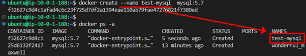 docker create --name test-mysql mysql:5.7 # docker create [옵션] --name <docker이름> <image이름>