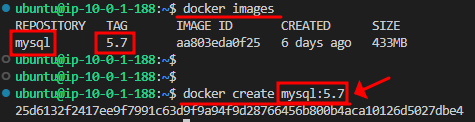 1. docker image 확인 및 생성docker images docker create mysql:5.7 # docker create [옵션] <image이름>
