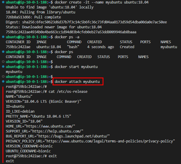 1. 동작중인 container에 접속하기docker attach myubuntu # docker attach <container ID 또는 NAMES>