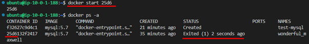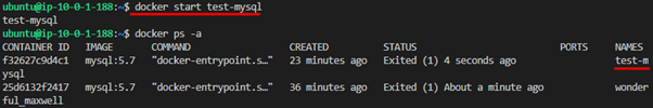 2. container Name으로 실행docker start test-mysql # docker start <container NAEMS>