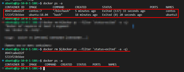 docker rm $(docker ps --filter 'status=exited' -a -q)