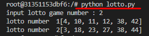 # input lotto game number에 횟수를 입력하면 횟수만큼 6개의 번호의 배열이 출력된다.
