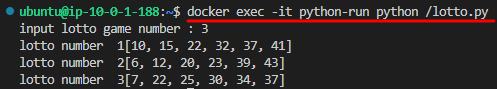 (1) docker exec명령으로 python파일을 직접 실행docker exec -it python-run python /lotto.py
