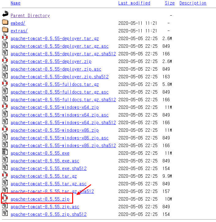 apache-tomcat-8.5.55.zip을 선택합니다.