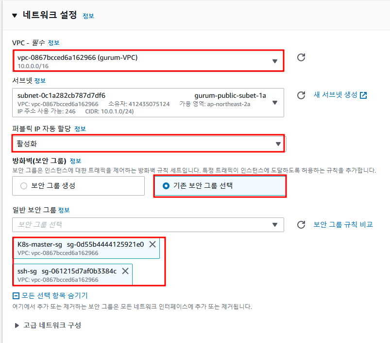 필수개방 port번호 확인 : https://kubernetes.io/ko/docs/reference/ports-and-protocols/