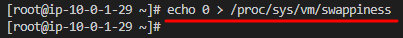 # kernel 속성의 스왑을 비활성화한다. (root 사용자 전환 후, 수행한다.)