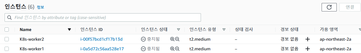 2. 이미지로 master node와 동일한 구성으로 2개의 인스턴스 생성(worker node)