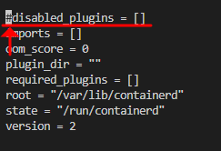 (2) k8s 환경 구성 - containerd 설정mkdir /etc/containerd containerd config default > /etc/containerd/config.toml vi /etc/containerd/config.toml- config.toml 파일에서 disabled_plugins 앞에 # 추가