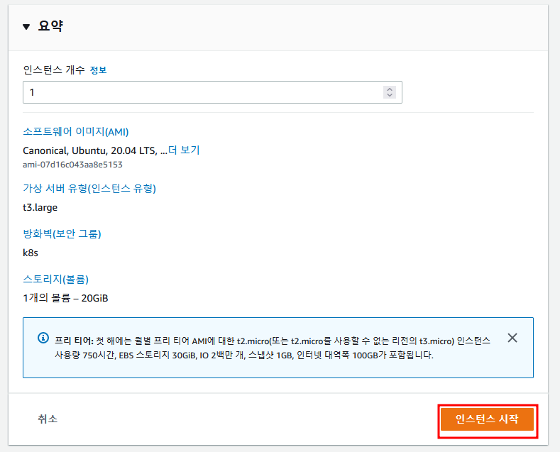 # 4. 요약 - 인스턴스 개수 3개 설정 후, 인스턴스 시작 클릭