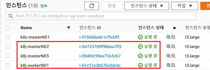# 1. 새로 생성된 3개의 인스턴스의 이름설정 - k8s-masterND2, k8s-masterND3, k8s-workerND1 # 2. 각 노드의 host명 변경