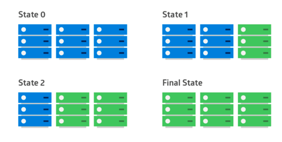 - 무중단 방식의 가장 기본적인 방식으로 사용중인 인스턴스 내에서 새버전을 점진적으로 교체한다.